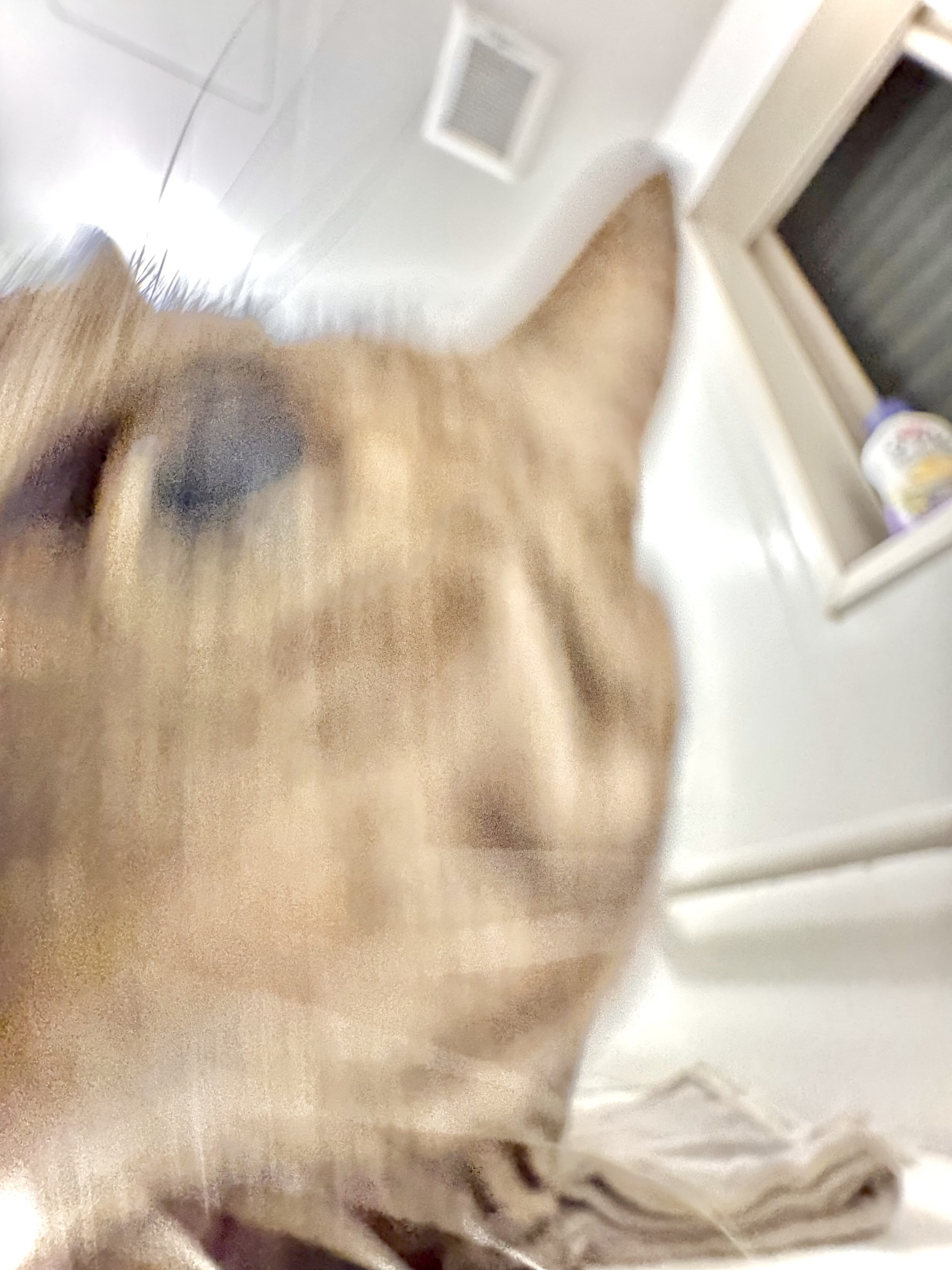 浴室にいる間、まるは人の周りをぐるぐるウロウロしてなかなか落ち着きません。甘えたいのもあると思いますが、マーキングとパトロールを兼ねているような行動です。