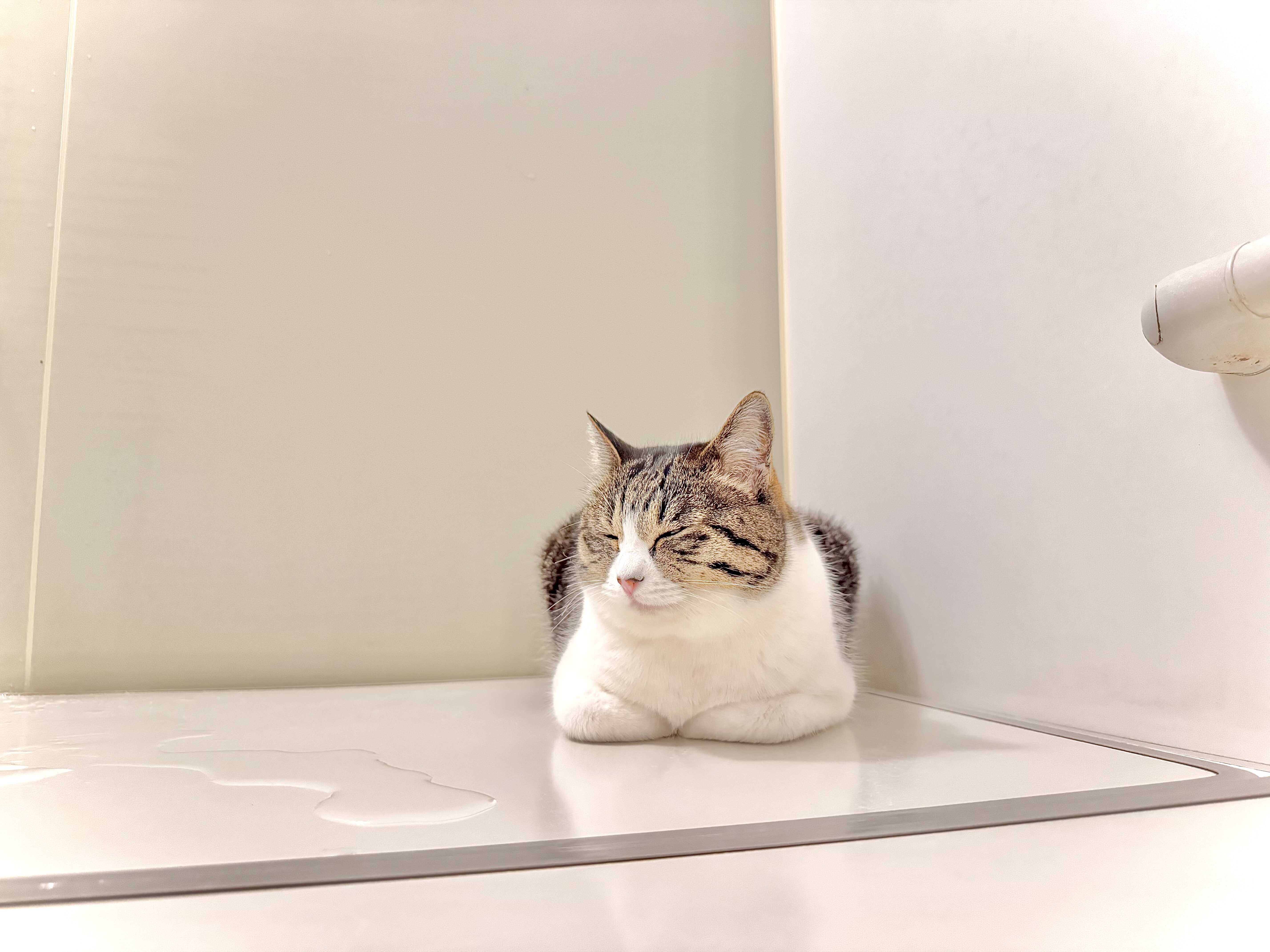無理に慣れさせる必要はありませんが、シャワーの音だけを聞かせる・蒸気だけ体験させるなど段階的に慣らすことができます。まるは慣れることなく今も逃げますが、それはまるの個性として受け入れています。